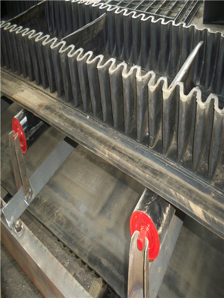 擋邊帶式輸送機(jī)其結(jié)構(gòu)是在平行橡膠運(yùn)輸帶兩側(cè)黏上可自由伸縮的橡膠波形式的裙邊,在裙邊之間又粘有一定強(qiáng)度和彈性的橫隔板組成匣型斗,使物料在斗中進(jìn)行連續(xù)輸送。擋邊帶式輸送機(jī)可廣泛用于煤炭、糧食、建材、化工、水電、和冶金等部門,在環(huán)境濕度為19°-+40°范圍內(nèi),輸送堆積比重為0.5-2.5t/m3的各種散裝物料。對(duì)于輸送有特殊要求的,如:高溫、酸、堿、油類物質(zhì)或有機(jī)溶劑等成分物料,采用特殊的擋邊輸送帶。