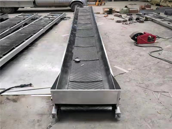 主要由機(jī)架、輸送皮帶、皮帶輥筒、張緊裝置、傳動(dòng)裝置等組成。機(jī)身采用鋼板連接而成 ,由前后支腿的高低差形成機(jī)架,平面呈一定角度傾斜。機(jī)架上裝有皮帶輥筒、托輥等,用于帶動(dòng)和支承輸送皮帶。有減速電機(jī)驅(qū)動(dòng)和電動(dòng)滾筒驅(qū)動(dòng)兩種方式。