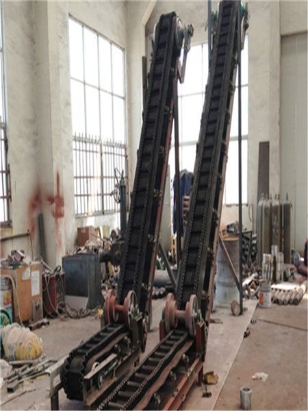 擋邊帶式輸送機(jī)其結(jié)構(gòu)是在平行橡膠運(yùn)輸帶兩側(cè)黏上可自由伸縮的橡膠波形式的裙邊,在裙邊之間又粘有一定強(qiáng)度和彈性的橫隔板組成匣型斗,使物料在斗中進(jìn)行連續(xù)輸送。擋邊帶式輸送機(jī)可廣泛用于煤炭、糧食、建材、化工、水電、和冶金等部門,在環(huán)境濕度為19°-+40°范圍內(nèi),輸送堆積比重為0.5-2.5t/m3的各種散裝物料。對(duì)于輸送有特殊要求的,如:高溫、酸、堿、油類物質(zhì)或有機(jī)溶劑等成分物料,采用特殊的擋邊輸送帶。