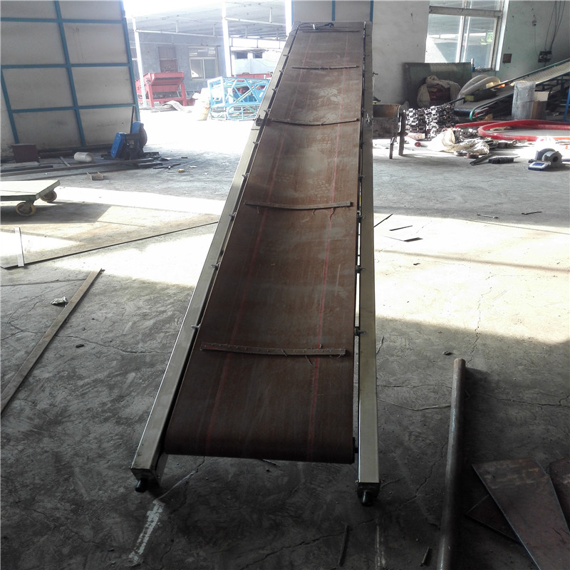移動式皮帶輸送機,膠帶主要有寬度500、600、650、800mm,1000、1200、1500等特殊規(guī)格可以另行設(shè)計,皮帶輸送機是一種連續(xù)輸送散狀物料或成件物品的運輸設(shè)備,具有結(jié)構(gòu)緊湊,工作性能可靠、輸送量大、生產(chǎn)效率高、操作靈便等優(yōu)點,廣泛運用于港口、碼頭、車站、倉庫、料場、廠礦等地輸送煤炭、砂石、糧食、化工原料、成件物品等。輸送機配有行走輪,可作整機移動,輸送傾角可以根據(jù)實際需要調(diào)整,大傾角為22度,變幅機構(gòu)可以手動調(diào)整,也可以采用電動執(zhí)行;根據(jù)輸送工藝布置要求,可以單機或多臺組成水平或傾斜的輸送系統(tǒng)。
