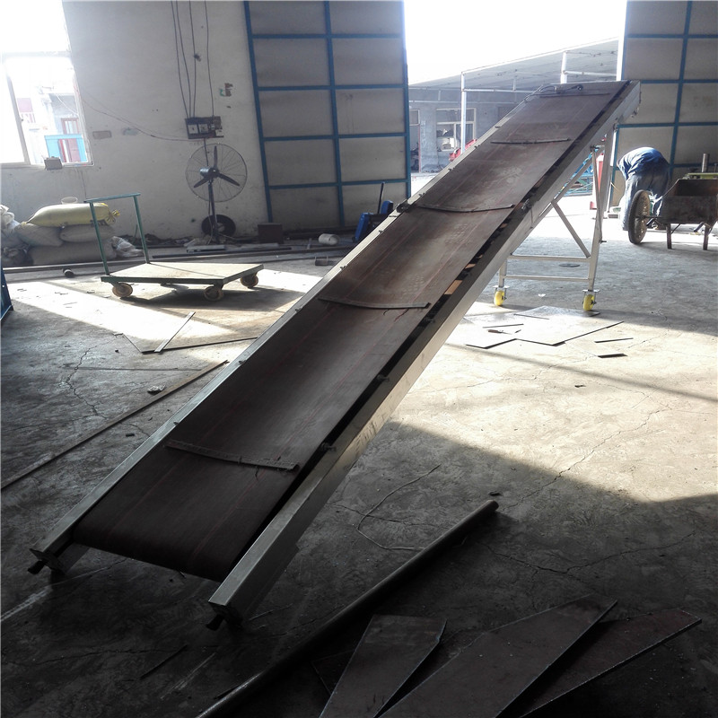主要由機(jī)架、輸送皮帶、皮帶輥筒、張緊裝置、傳動(dòng)裝置等組成。機(jī)身采用鋼板連接而成 ,由前后支腿的高低差形成機(jī)架,平面呈一定角度傾斜。機(jī)架上裝有皮帶輥筒、托輥等,用于帶動(dòng)和支承輸送皮帶。有減速電機(jī)驅(qū)動(dòng)和電動(dòng)滾筒驅(qū)動(dòng)兩種方式。