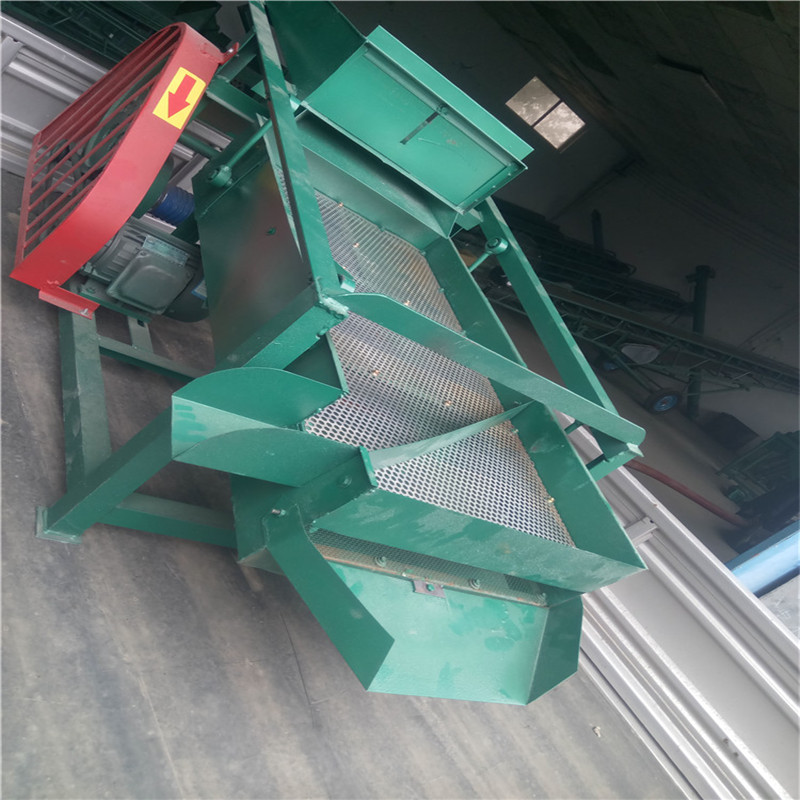 進行初次篩分層篩分,以比較大的網(wǎng)孔,作為大塊雜質(zhì)篩分,如玉米芯,黃豆片,花生皮等等。大的雜質(zhì)會留在層篩網(wǎng)中,通過電機來回篩選抖動,把雜物振到雜物出料口,需要篩分的物料會漏到下層篩網(wǎng)中,進行下一層篩網(wǎng) 層篩網(wǎng),網(wǎng)目比較小,也就是糧食機的小塊雜質(zhì),篩網(wǎng)網(wǎng)孔比需要篩分的物料大。
