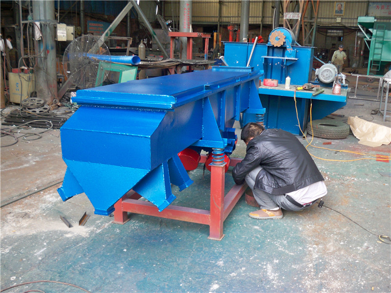 直線(xiàn)振動(dòng)篩采用雙振動(dòng)電機(jī)驅(qū)動(dòng),當(dāng)兩臺(tái)振動(dòng)電機(jī)做同步、反向旋轉(zhuǎn)時(shí),其偏心塊所產(chǎn)生的激振力在平行于電機(jī)軸線(xiàn)的方向相互抵消,在垂直于電機(jī)軸的方向疊為一合力,因此篩機(jī)的運(yùn)動(dòng)軌跡為一直線(xiàn)。其兩電機(jī)軸相對(duì)篩面有一傾角,在激振力和物料自重力的合力作用下,物料在篩面上被拋起跳躍式向前作直線(xiàn)運(yùn)動(dòng),從而達(dá)到對(duì)物料進(jìn)行篩選和分級(jí)的目的??捎糜诹魉€(xiàn)中實(shí)現(xiàn)自動(dòng)化作業(yè)。具有能耗低、效率高、結(jié)構(gòu)簡(jiǎn)單、易維修、全封閉結(jié)構(gòu)無(wú)粉塵溢散的特點(diǎn)。篩分目數(shù)400目,可篩分出7種不同粒度的物料。