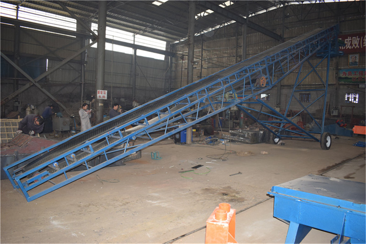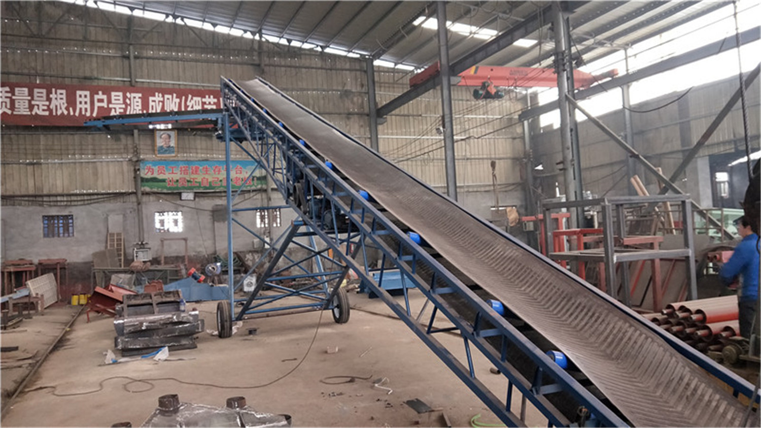 在移動式皮帶輸送機機架兩旁裝可配有擋管或擋邊,防止糧包在輸送時掉包,防止糧食撒漏,便于散裝糧食輸送。大、小走輪均采用實心膠輪或充氣橡膠輪,防止壓碎糧食和倉庫地面。小走輪具有自動轉向的功能,保證了機器移動輕便靈活。移動式皮帶輸送機機架采用焊接的珩架結構,在包運集中載荷下有足夠的強度和良好的鋼性。主要用于裝卸地點經常變更動的場所,用來短途運輸及裝卸散料或單件重量300公斤以下的成件物品。輸送機底部安裝有萬向輪,可以根據物料的堆放位置隨意移動,是一種工效高,使用安全可靠,機動性好的連續(xù)輸送裝卸設備。經常使用的移動式皮帶輸送機寬度有500mm、600mm、800mm等,經常使用的長度有6米、8米、10米、12米、15米、16米、18米、20米、22米、30米100米200米等其它有客戶根據實際需求而制本系列輸送機分為可升降型及不可升降型兩大類,即:可移動不帶升降式皮帶輸送機和可移動升降式皮帶輸送機兩種類型。