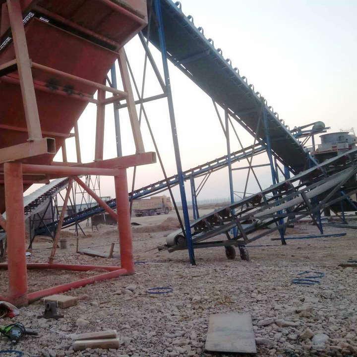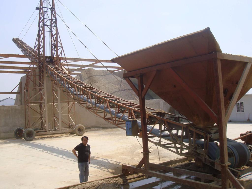 主要由機(jī)架、輸送皮帶、皮帶輥筒、張緊裝置、傳動(dòng)裝置等組成。機(jī)身采用優(yōu)質(zhì)鋼板連接而成 ,由前后支腿的高低差形成機(jī)架,平面呈一定角度傾斜。機(jī)架上裝有皮帶輥筒、托輥等,用于帶動(dòng)和支承輸送皮帶。有減速電機(jī)驅(qū)動(dòng)和電動(dòng)滾筒驅(qū)動(dòng)兩種方式。皮帶輸送機(jī)廣泛用于冶金、煤炭、水電、礦山等部門中用來(lái)輸送散裝物料或成件的輸送。在設(shè)備生產(chǎn)中廣泛的應(yīng)用在石料生產(chǎn)線的輸送中。