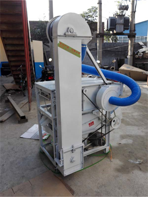 本機(jī)為三層篩網(wǎng),先經(jīng)過進(jìn)料口處風(fēng)機(jī)抽風(fēng),直接抽走重量輕的雜葉或麥秸稈,上層篩的初次篩分再把大雜清理過,好的糧食(種子)直接落到下層篩網(wǎng)上,下層篩網(wǎng)會把糧食(種子)中的小雜.小石子.有缺陷的糧食(種子)直接漏掉,完好的糧食(種子)會從出料口篩分出來。該小型清糧機(jī)解決了揚場機(jī)的功能單一,不能有效去除石子.土塊的缺陷,更能為清理、凈選糧食(種子)帶來滿意的效果。該機(jī)有占地小,移動方便,便以維修,除塵除雜效率明顯,能耗低,使用簡便等優(yōu)點。